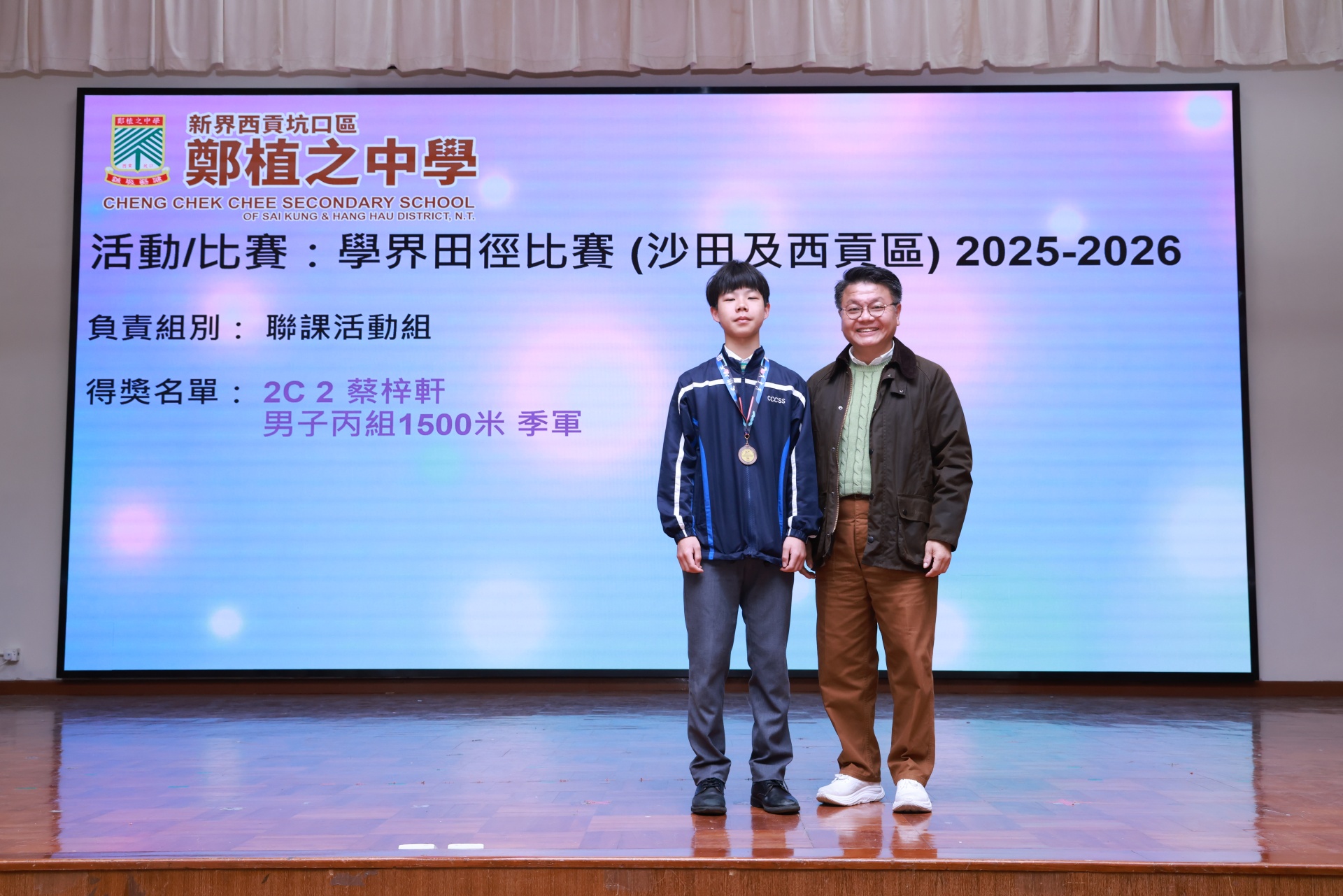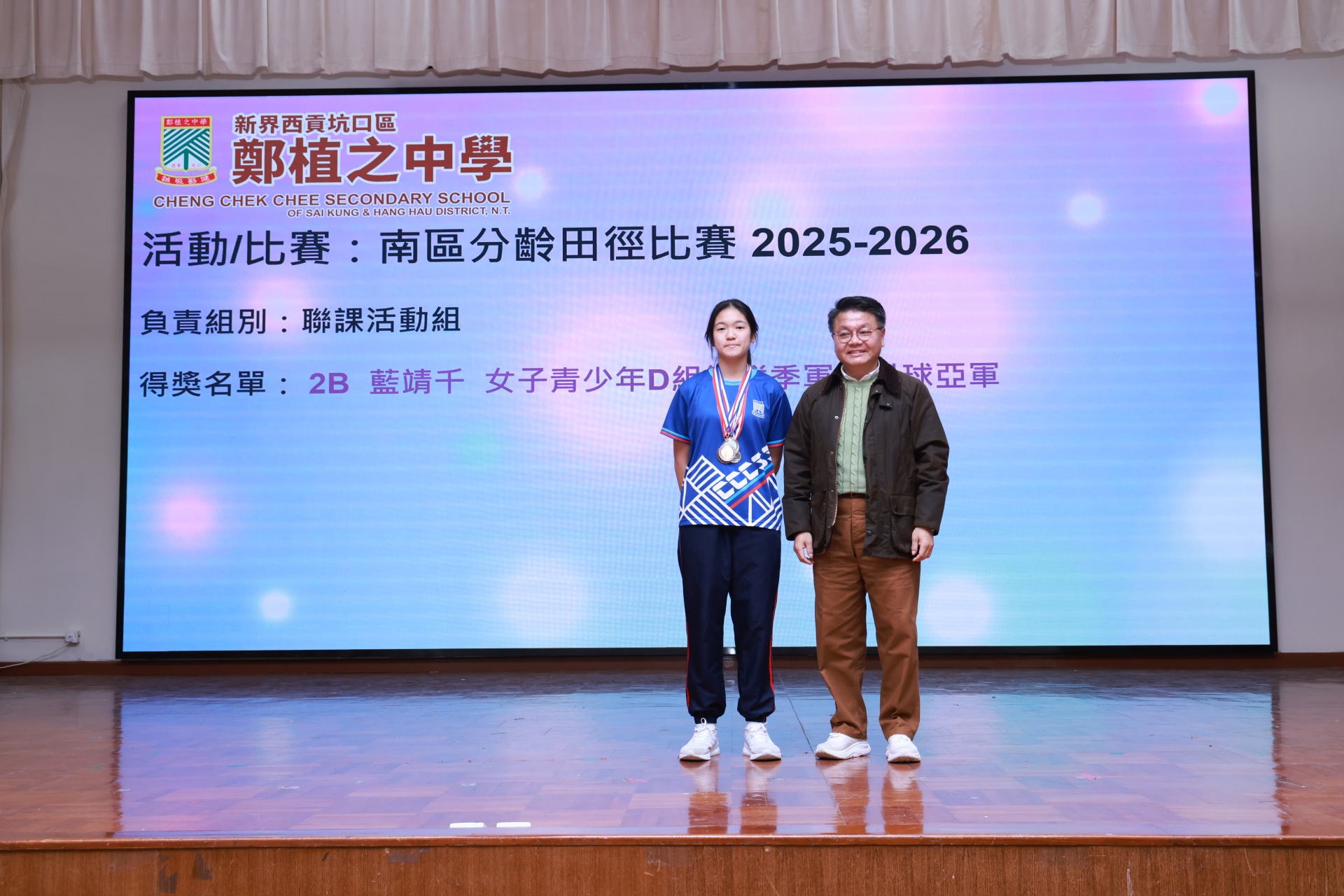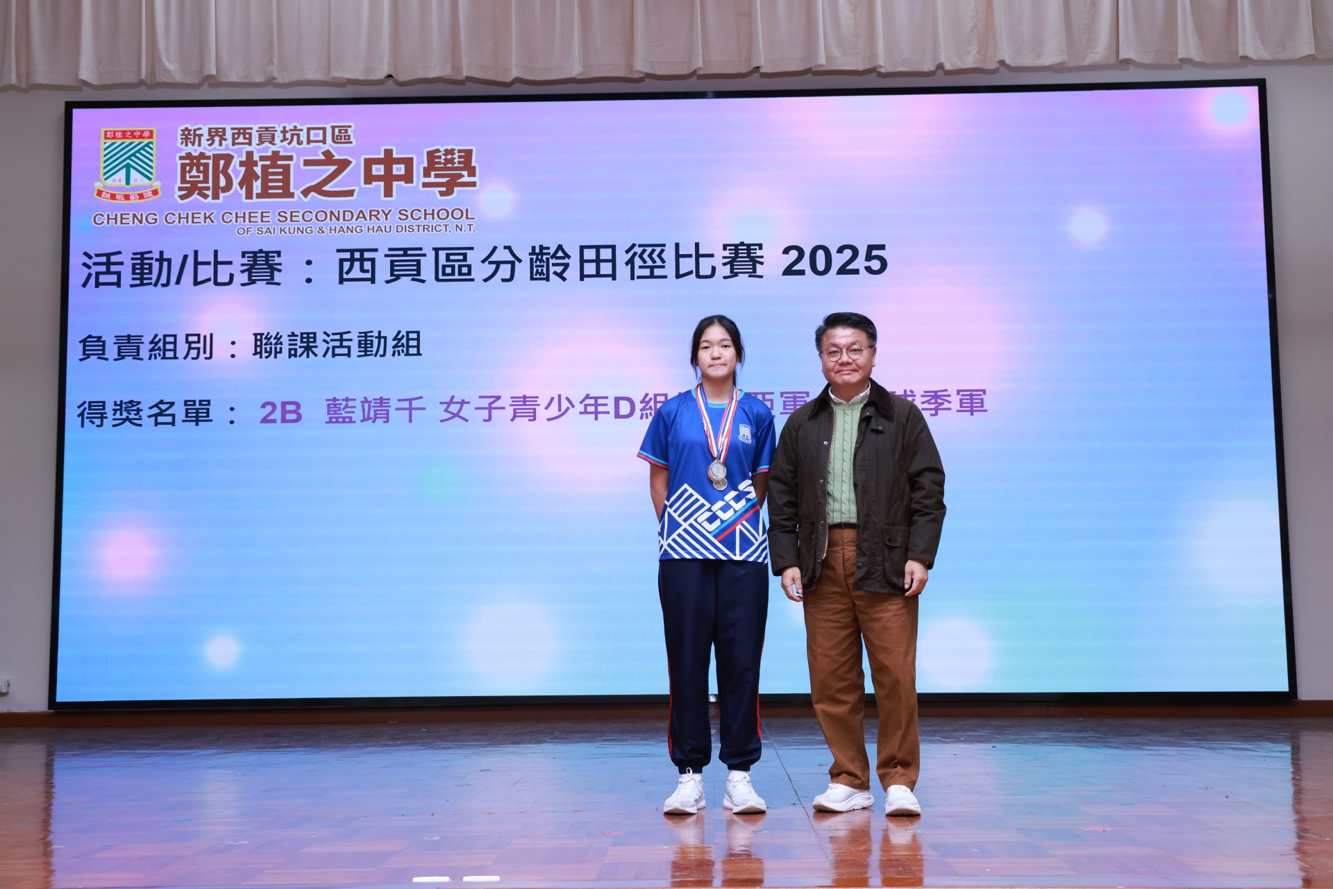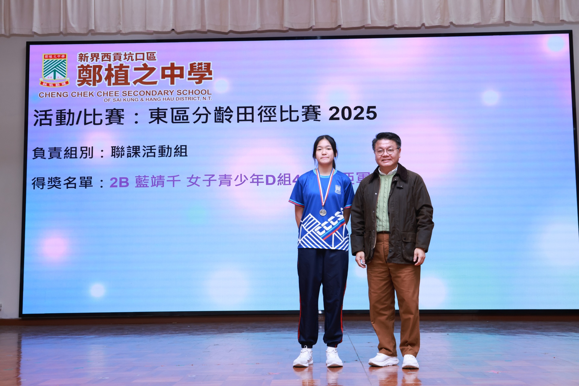 得獎名單:2B 藍靖千 女子青少年D組400 米亞軍