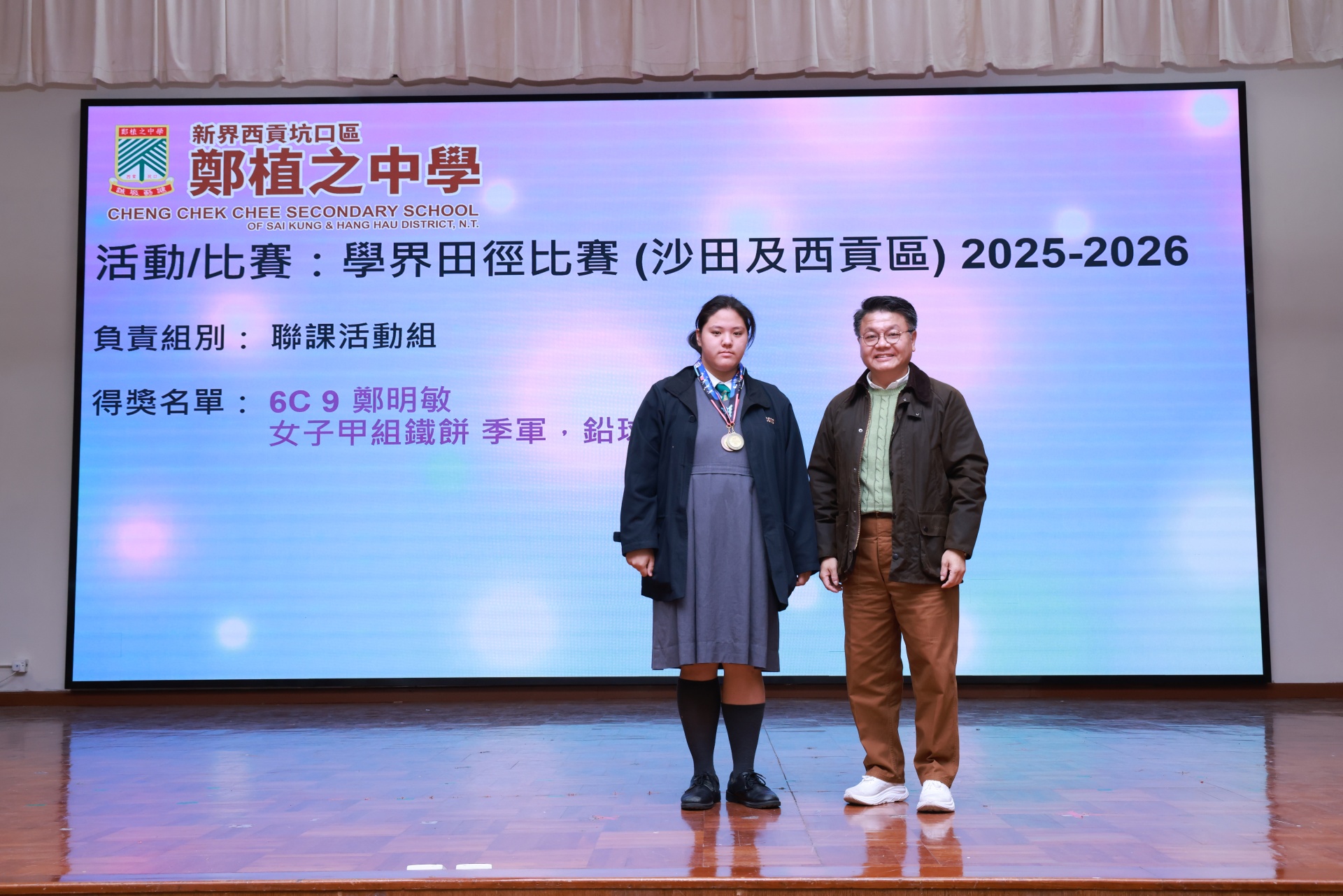 得獎名單: 2B 藍靖千 女子青少年D組鐵餅季軍,鉛球亞軍